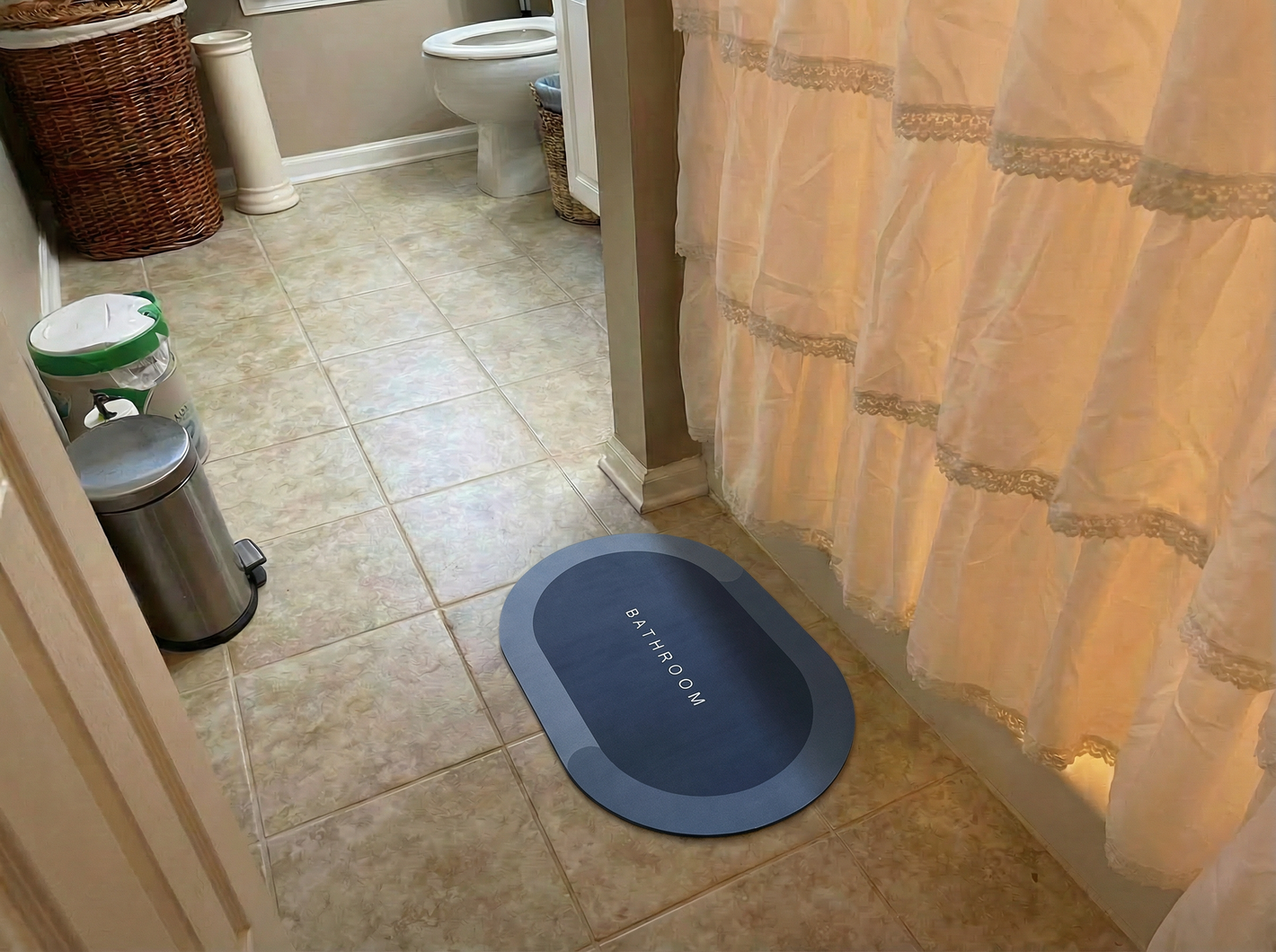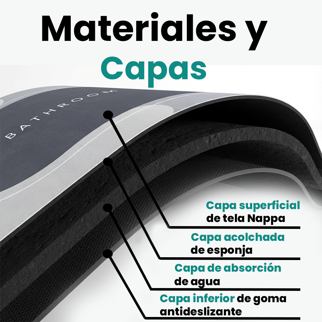 El material absorbente con tecnología de secado rápido mantiene el piso seco, incluso después del uso diario y las salpicaduras de agua.